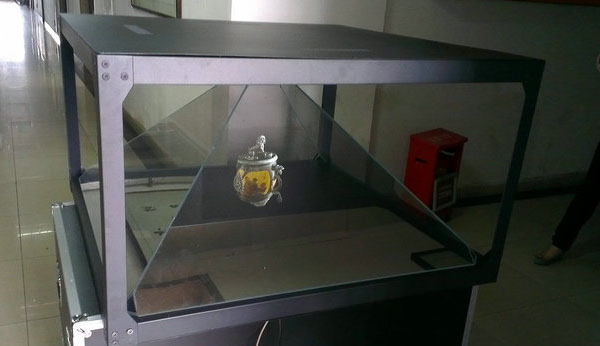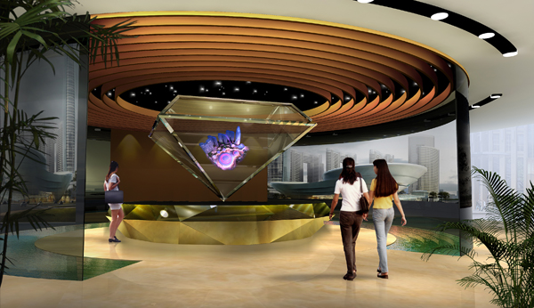全息投影技术也称虚拟成像技术是利用干涉和衍射原理记录并再现物体真实的三维图像的记录和再现的技术。幻影成像系统也称虚拟成像是基于“实景造型”和“幻影”的光学成像结合,将所拍摄的影像(人、物)投射到布景箱中的主体模型景观中,演示故事的发展过程。绘声绘色,虚幻莫测,非常直观,给人留下较深的印象。由立体模型场景、造型灯光系统、光学成像系统(应用幻影成像膜作为成像介质)、影视播放系统、计算机多媒体系统、音响系统及控制系统组成,可以实现大的场景、复杂的生产流水线、大型产品等的逼真展示。